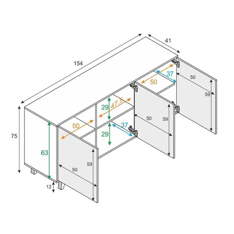 - Dimensiones: 75 cm (alto) x 154 cm (ancho) x 41 cm (prof.).