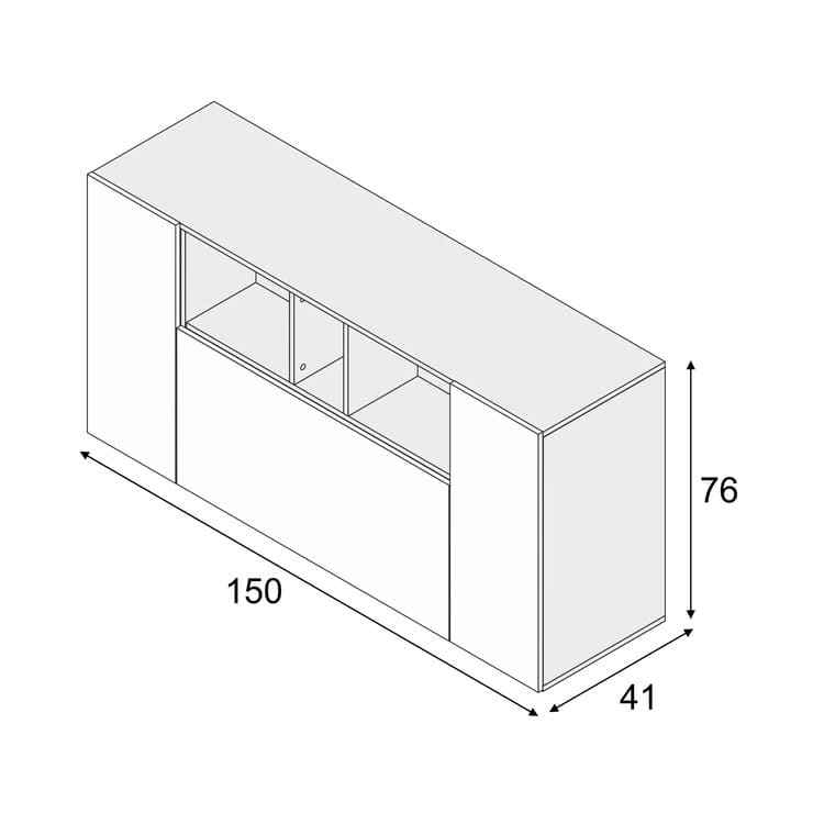 - Mueble: 76 cm (alto) x 150 cm (ancho) x 41 cm (prof.)