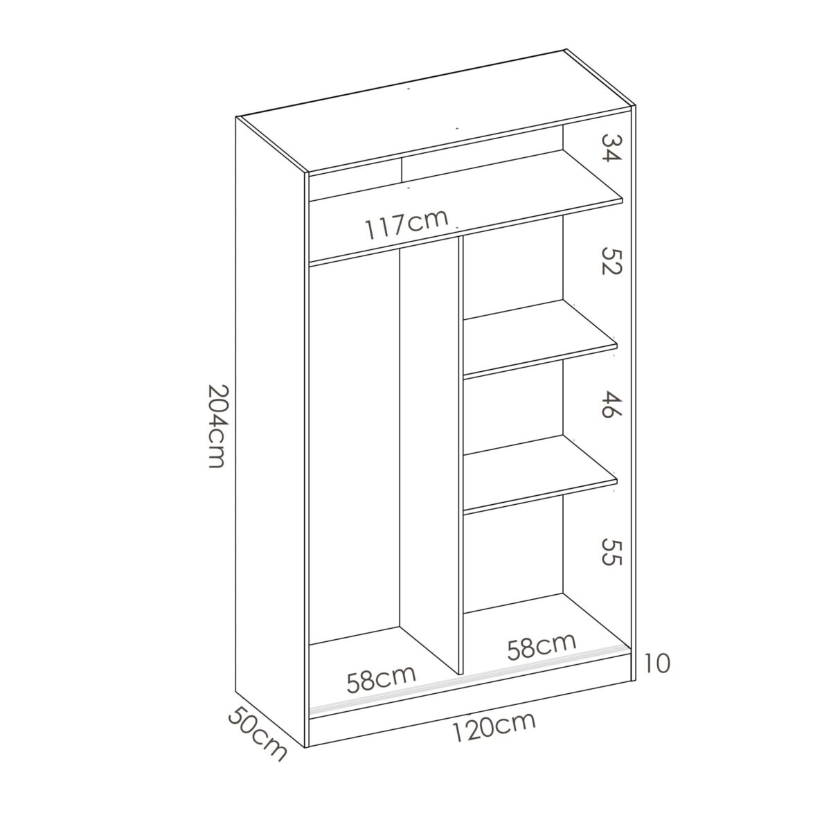 - Dimensiones: Alto 204 cm x Ancho 120 cm x Fondo 50 cm