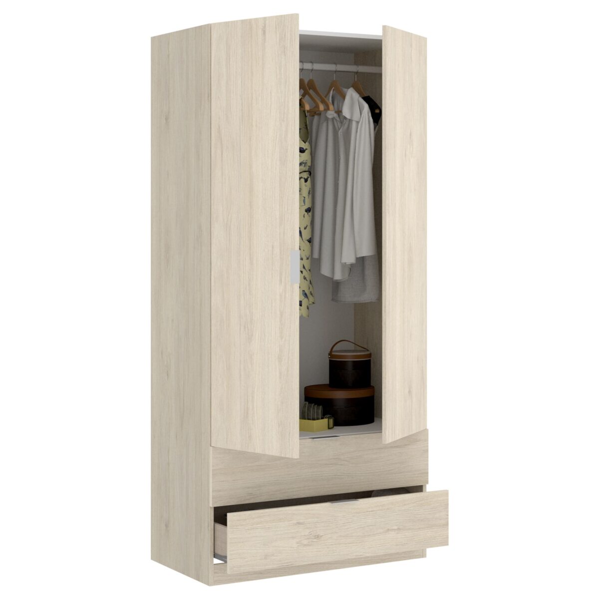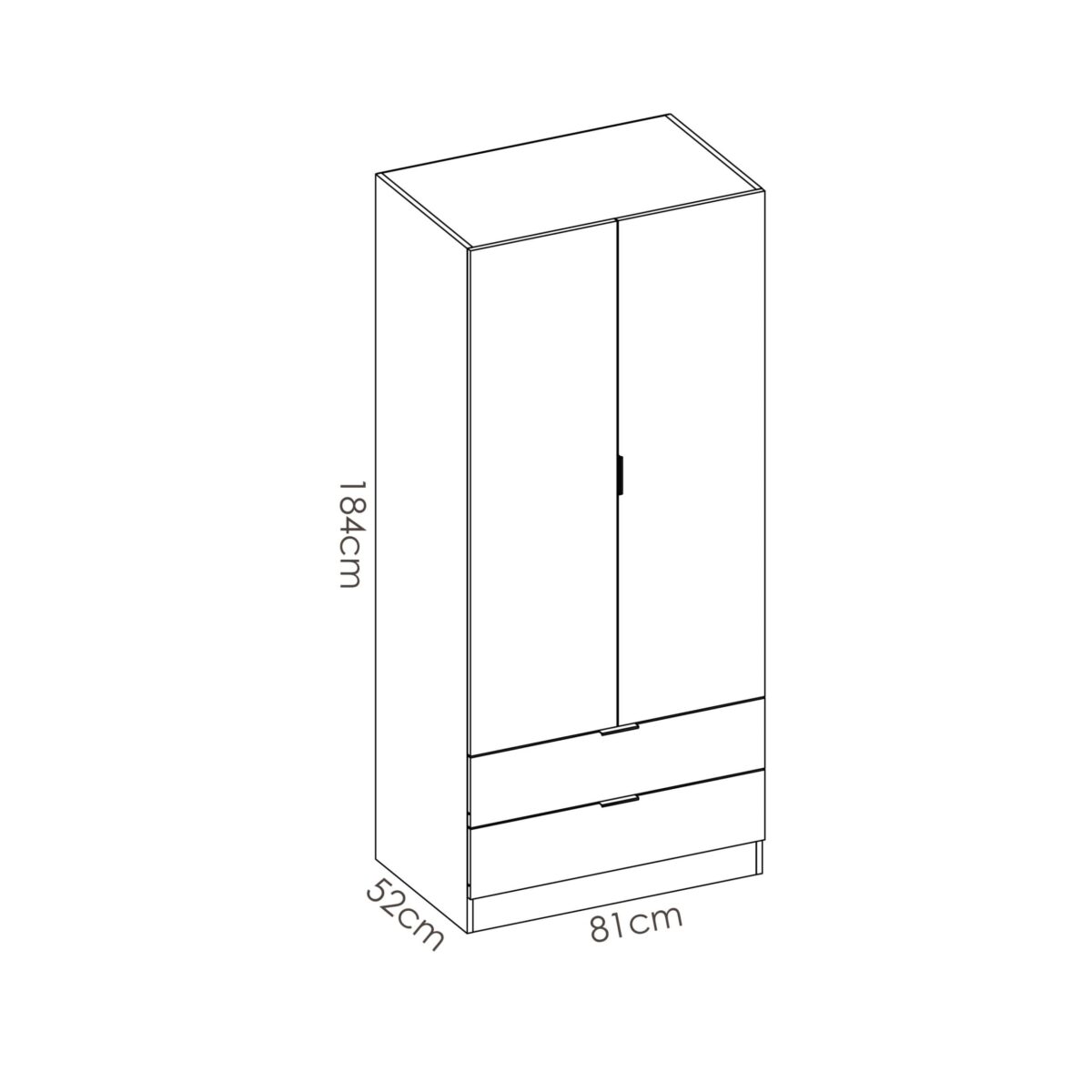 El ropero Essen es un armario económico de dos puertas y dos cajones inferiores de gran capacidad en color blanco, con una distribución interior compuesta por un estante superior y una barra metálica para colgar que te permitirá tener las camisas, pantalones y vestidos correctamente colgados.
