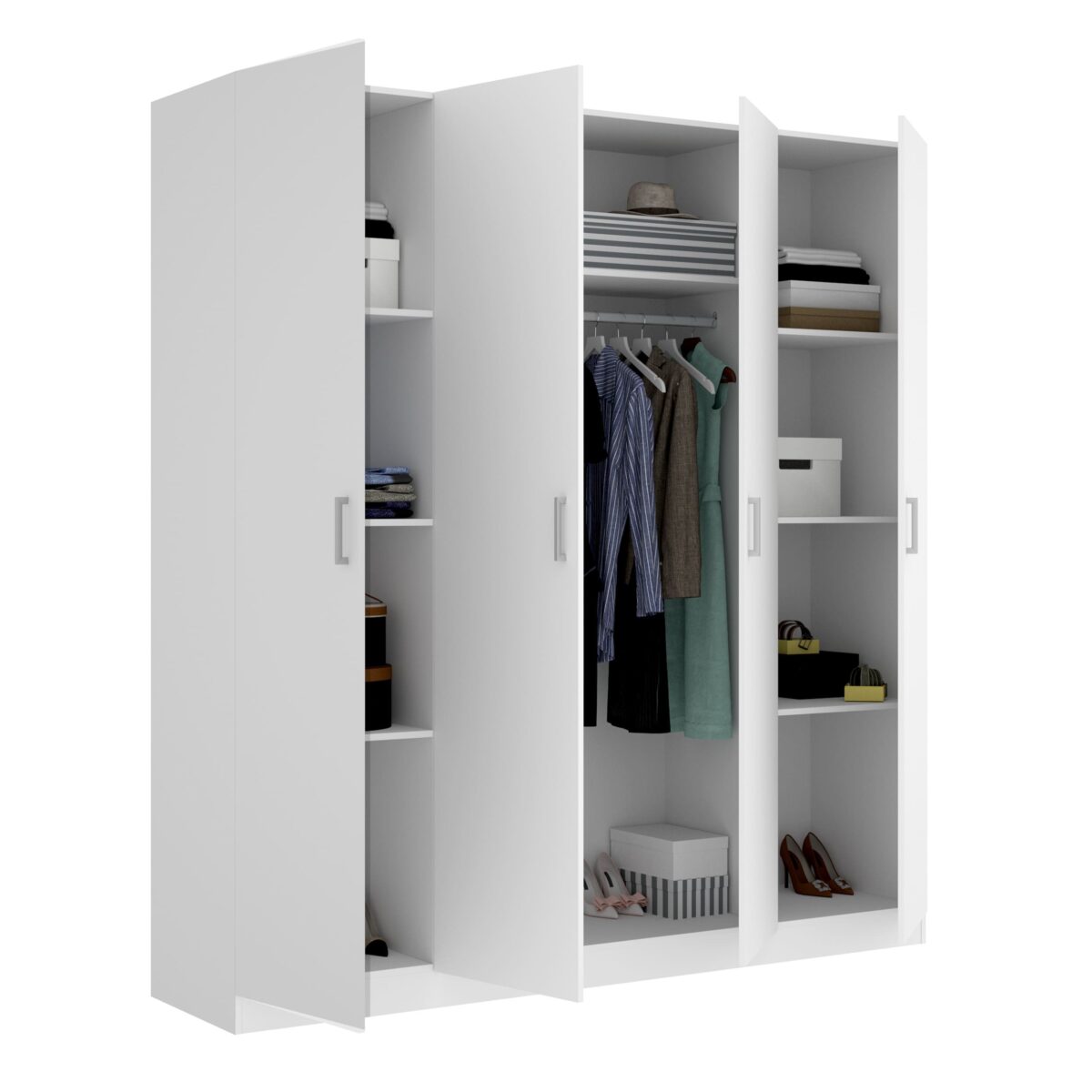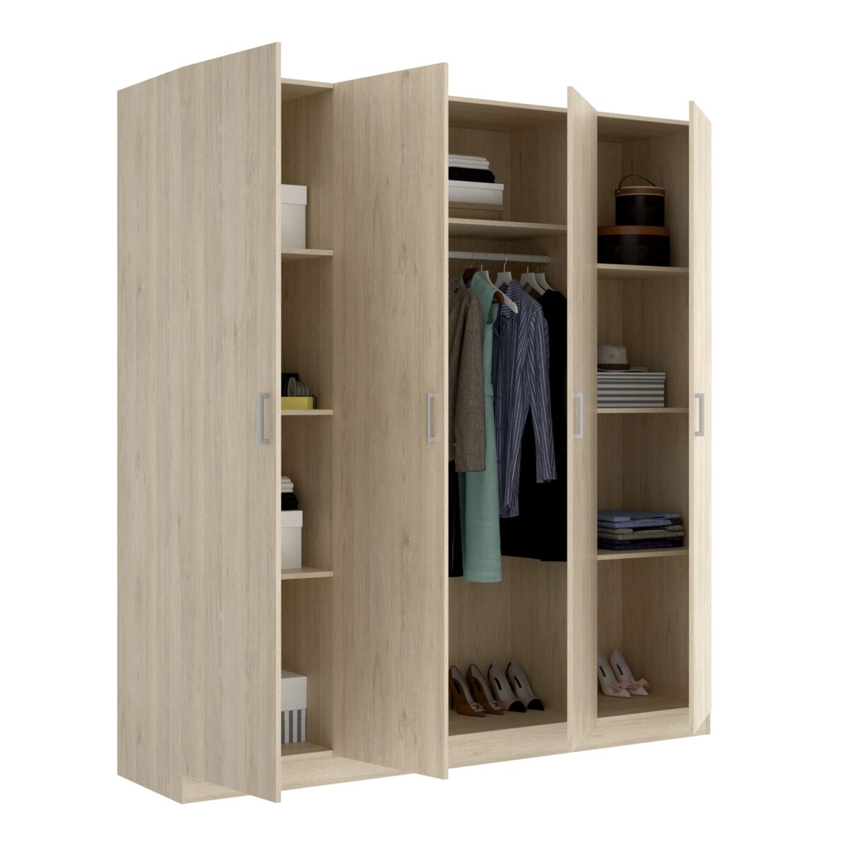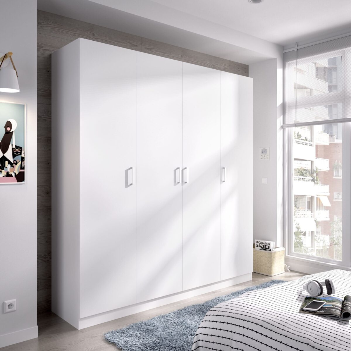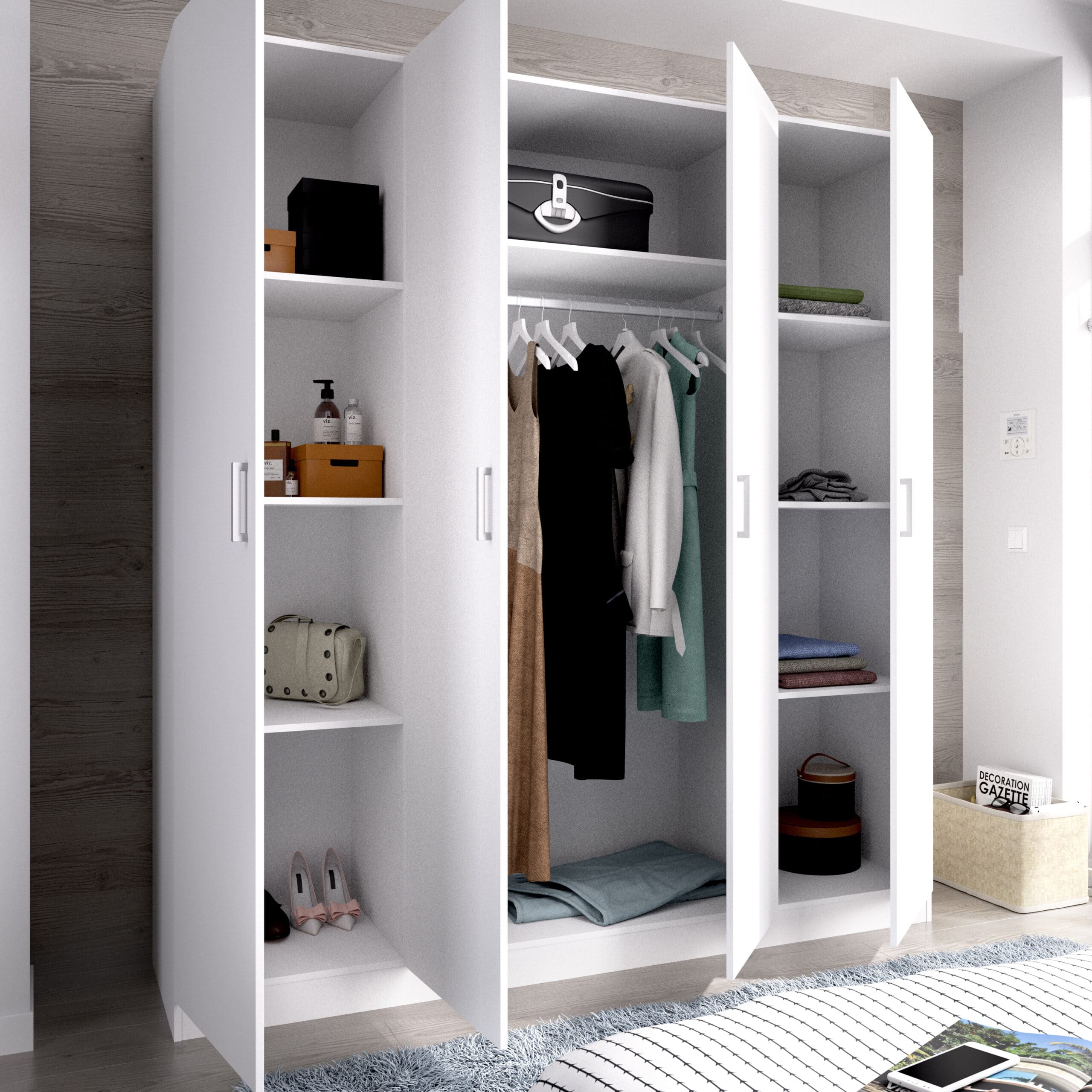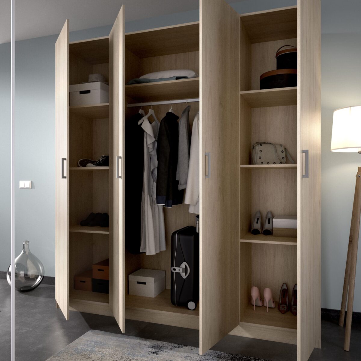Una vez llegas a casa después de unas largas compras de ropa, es posible que te quedes pensando en como vas a ordenar todo esto. Nuestro gran y fantástico Armario de 4 puertas Maxi y con grandes huecos en los extremos es ideal para almacenar toda la ropa, cajas y zapatos que tengas.