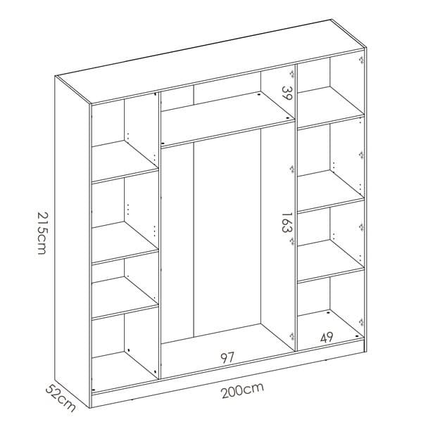 - Dimensiones: 215 cm (alto) x 200 cm (ancho) x 52 cm (Prof.)