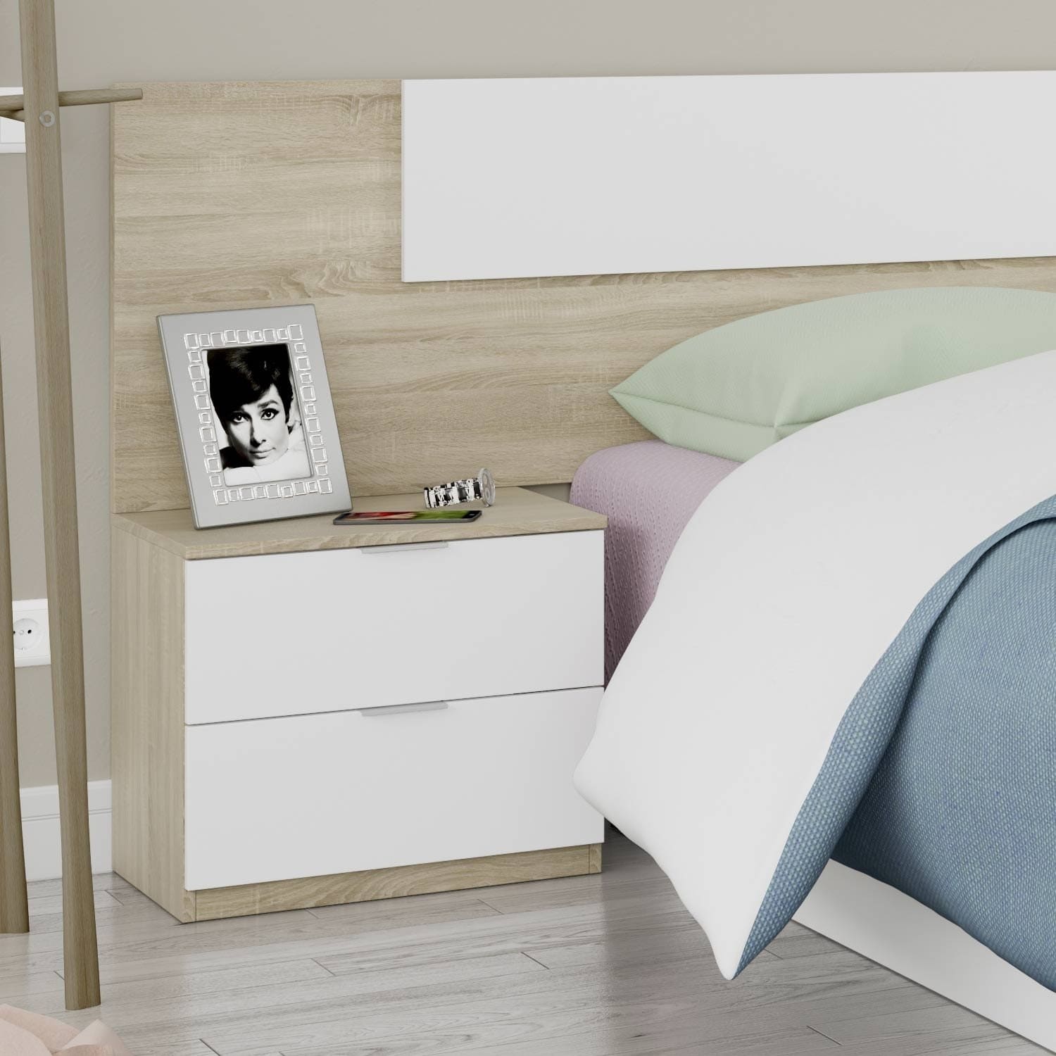 Características del Cabezal con 2 mesitas Noon Plus – Roble Canadian y Blanco Artik: