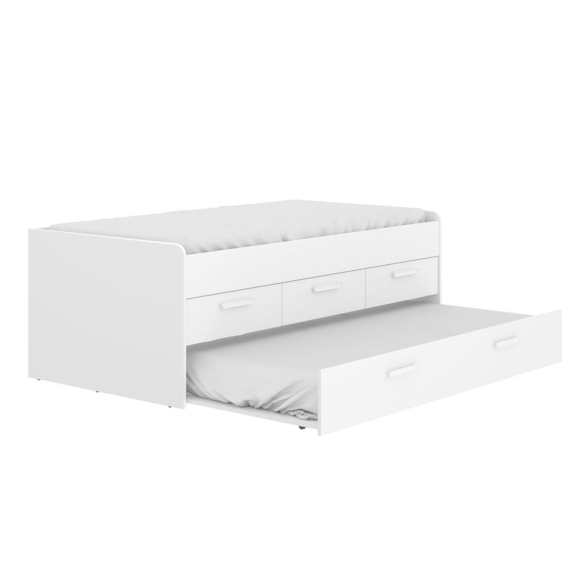 ¡Presentamos la Cama Compacta Leka Blanco, la solución perfecta para el dormitorio de tus hijos que combina practicidad y comodidad en un solo mueble!