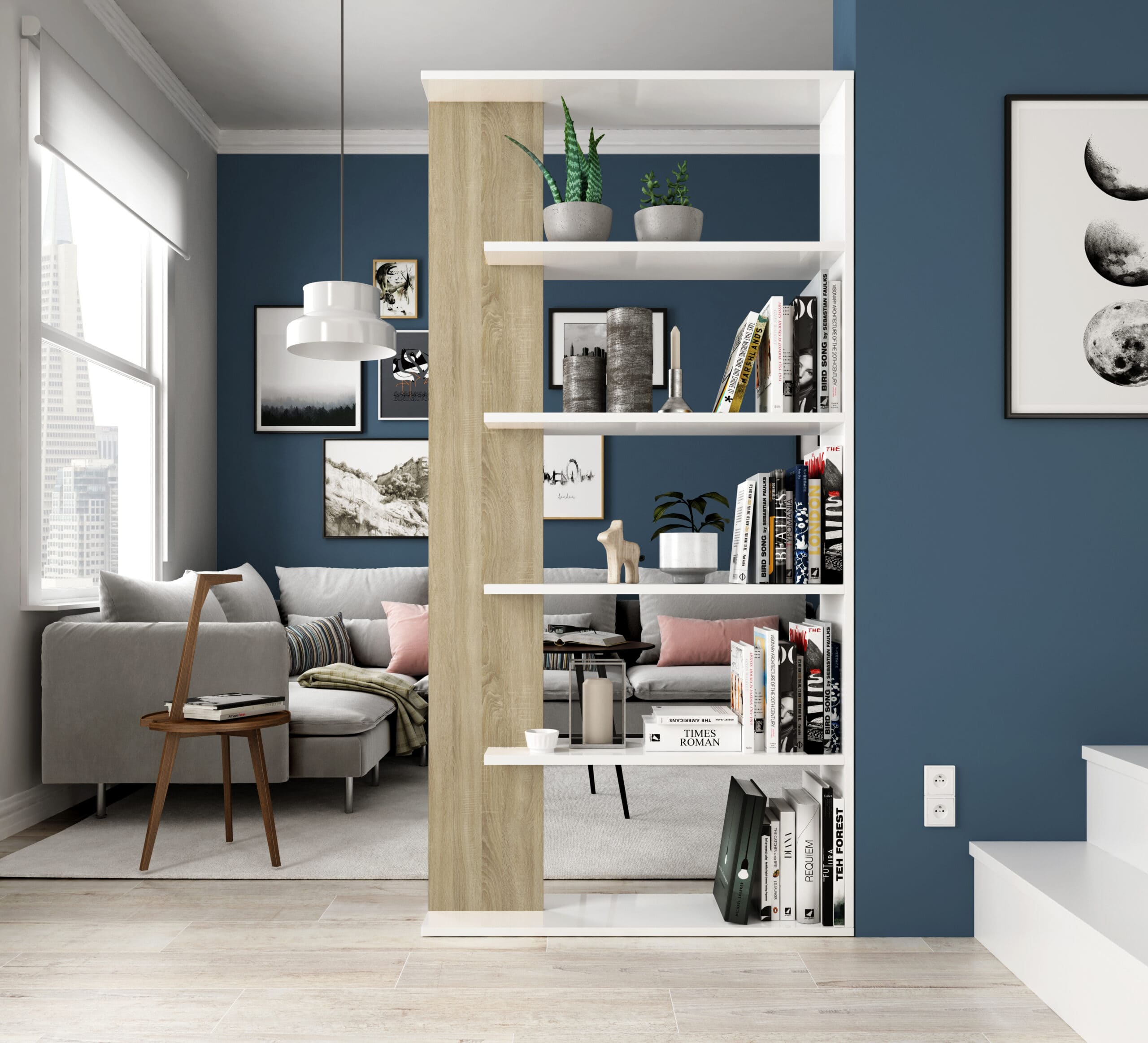 Características de la Estantería Loras – Blanco Artik y Roble Canadian: