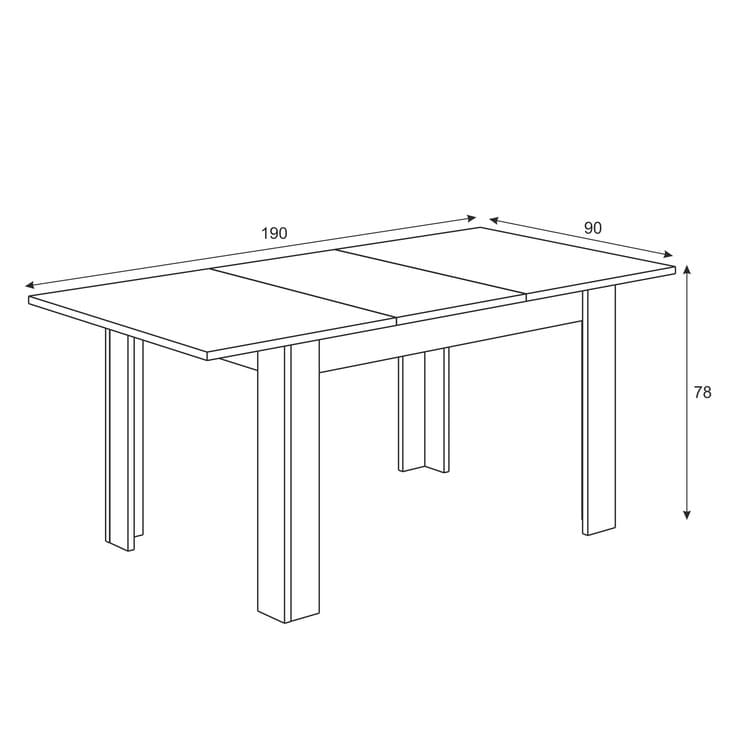 - Mesa abierta: 78 cm (alto) x 190 cm (ancho) x 90 cm (prof.)