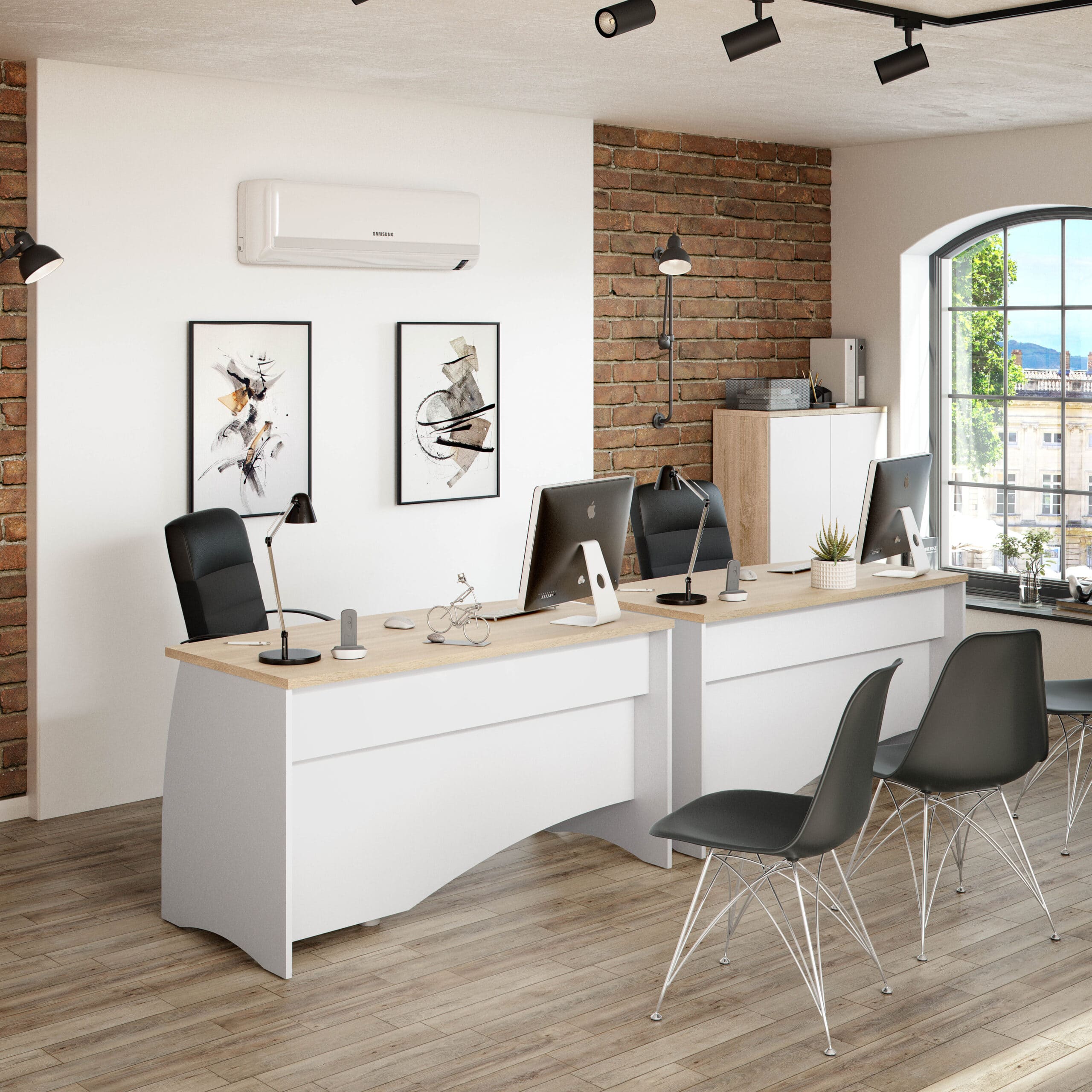 Mesa escritorio reversible con estantería Gio Plus – Blanco Artik y Roble Canadian