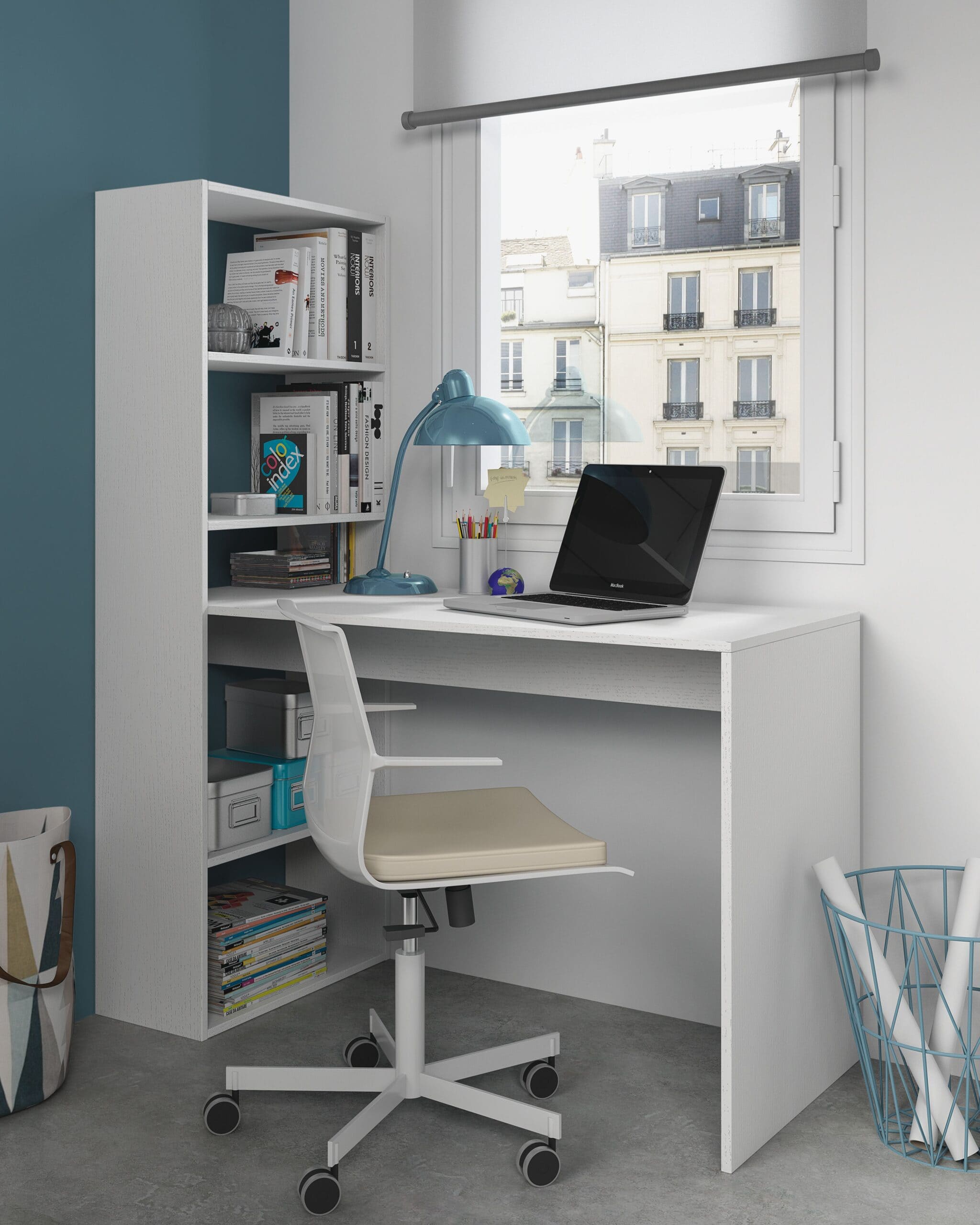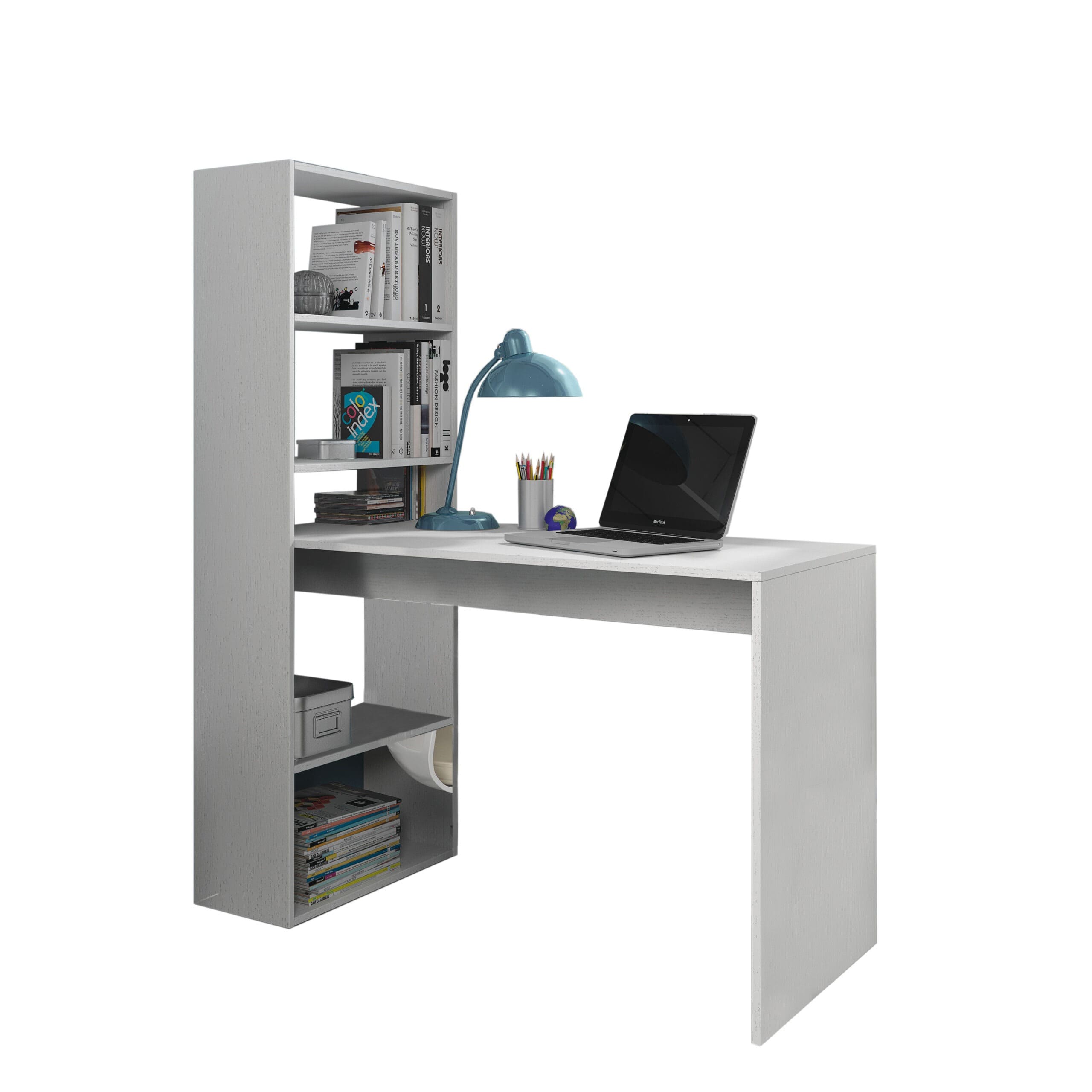 Mesa escritorio reversible con estantería Gio Plus - Blanco Artik