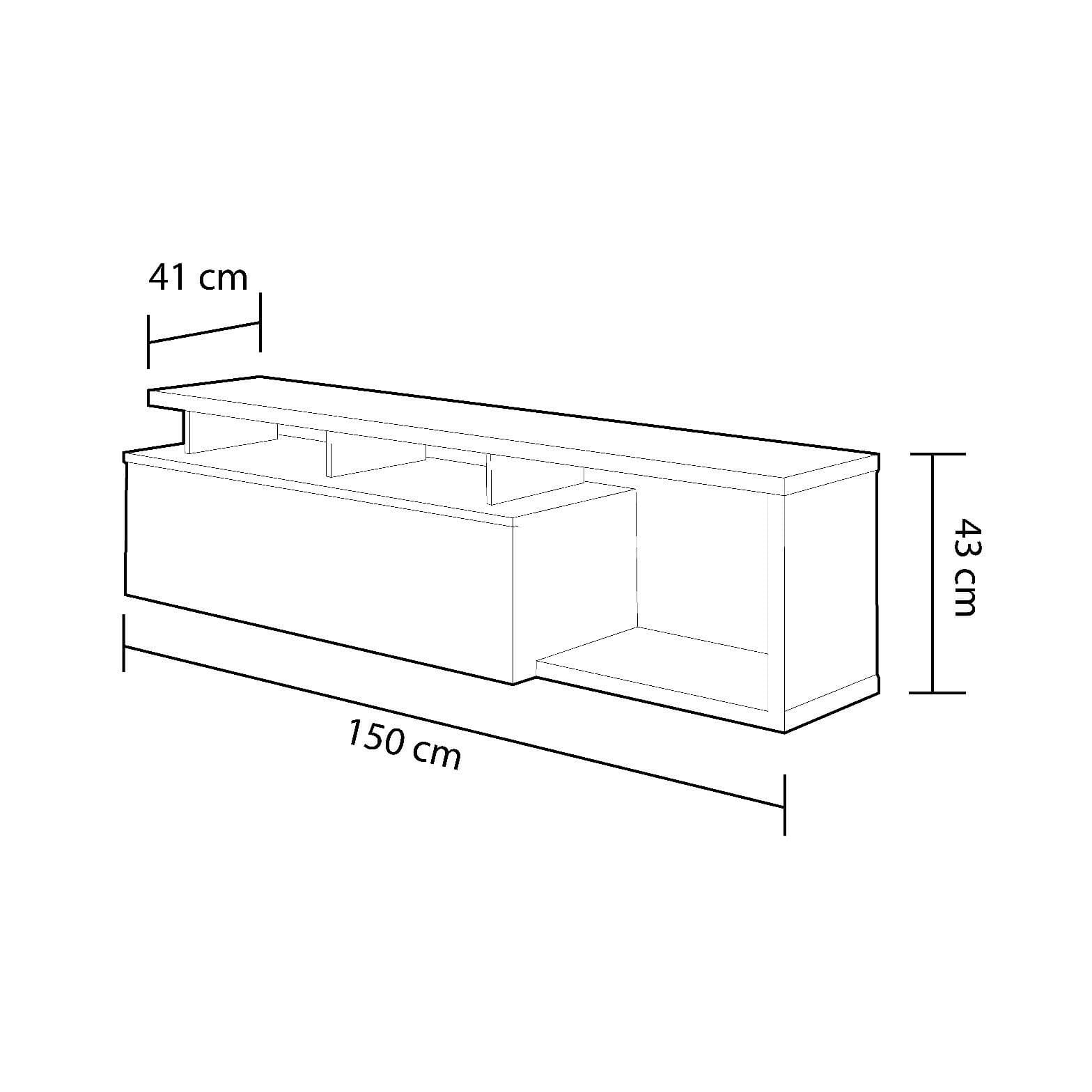 - Dimensiones:Mueble TV: 43 cm (alto) x 150 cm (ancho) x 41 cm (prof.)