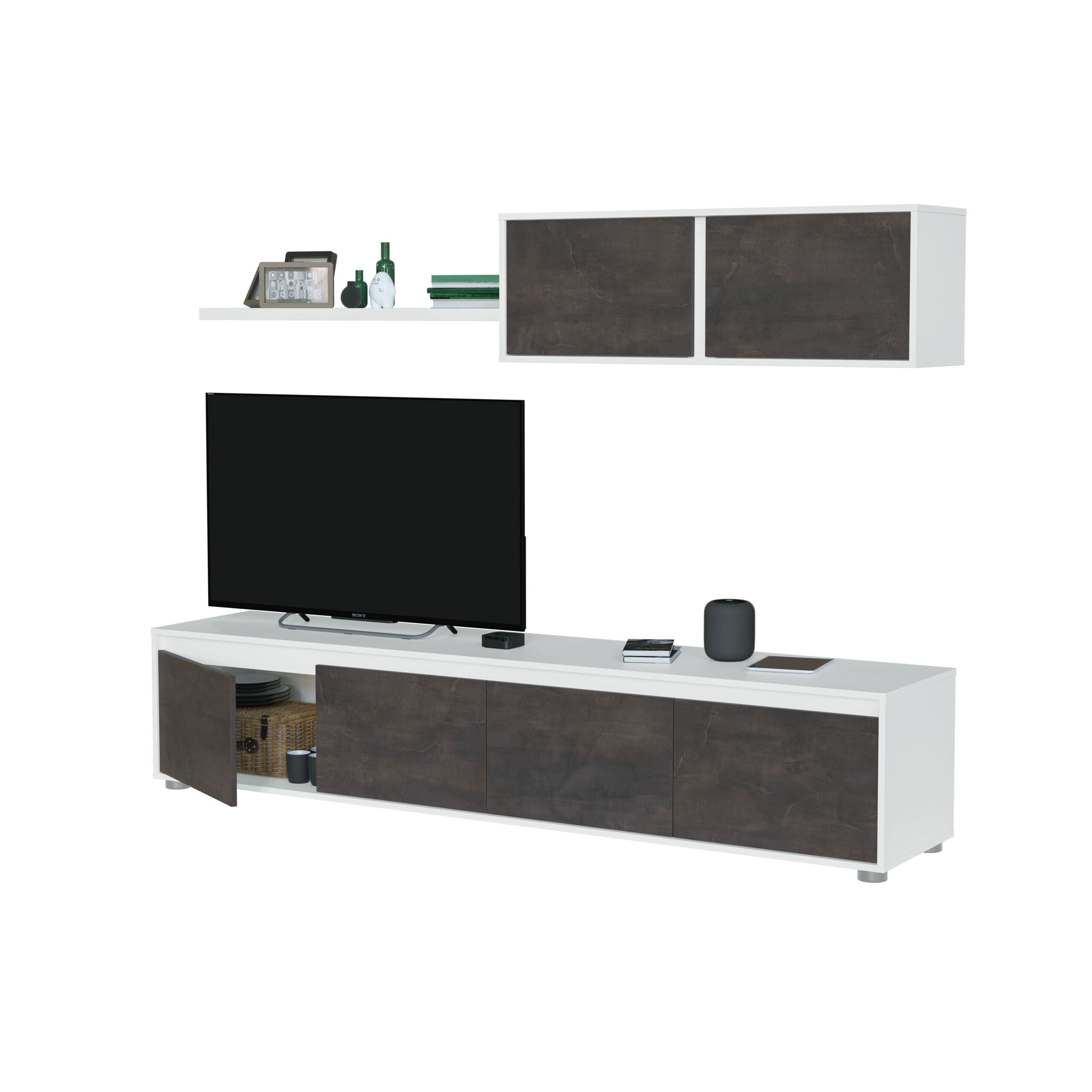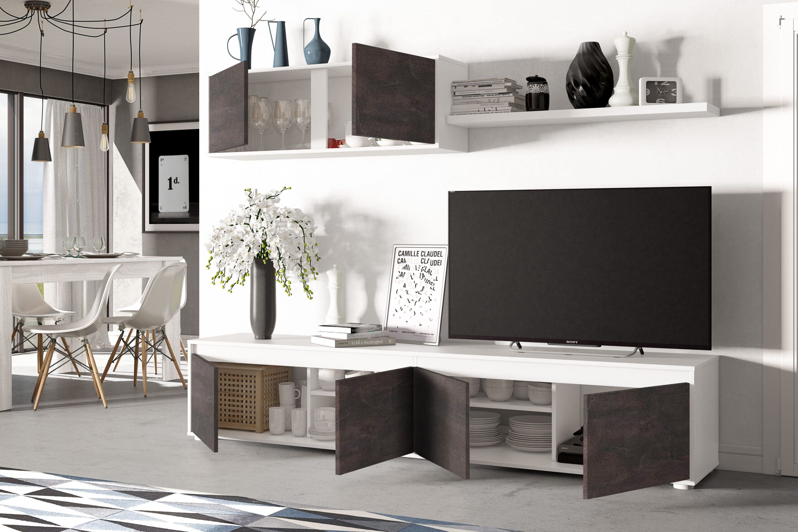 Además de su alta capacidad de almacenaje, te proporcionará un espacio lleno de bienestar y modernidad, ya que su precioso diseño con sus diferentes estantes y armarios le da un toque muy moderno a cualquier tipo de salón. El salón TV Home es de color Óxido y Blanco Artik, lo que hace que el mueble sea completamente moderno y de un toque de diseño a tu espacio.