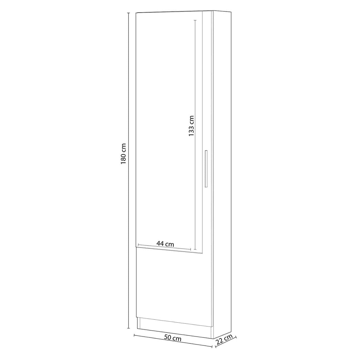 - Mueble: 180 cm (alto) x 50 cm (ancho) x 22 cm (prof.)