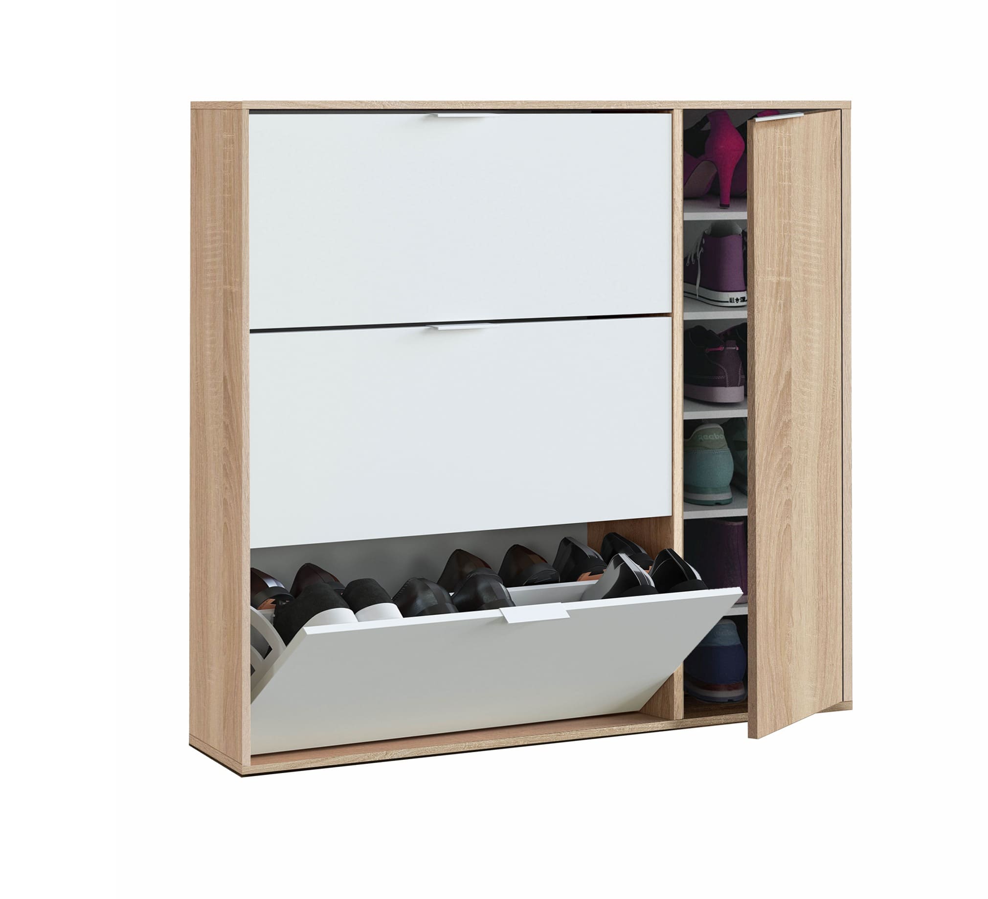 Zapatero con 4 puertas Matt - Roble Canadian y Blanco